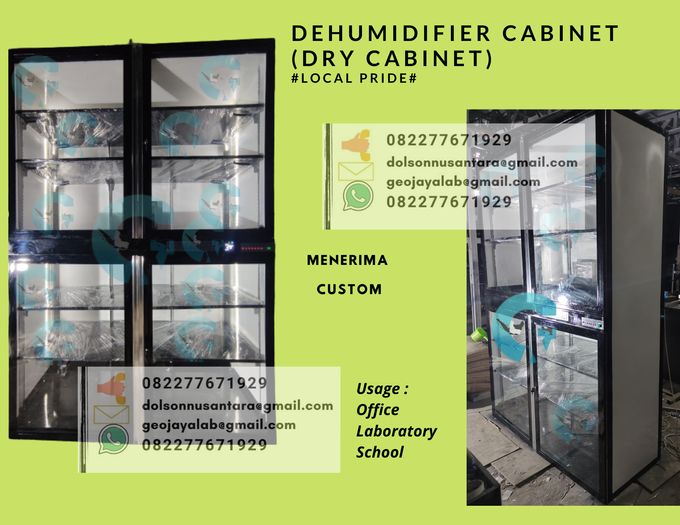 Material : Steel Sheet Finishing : Epoxy Coating 6 shelves, 4 doors Temperature Indicator Humudity Controller Big Capacity Usage for safely saving your digital goods (camera, mikroskop, lens, document, etc) Usage : Lab, Office, School etc External DImension : 1670x650x2500 (mm) for more info call admin 082277671929