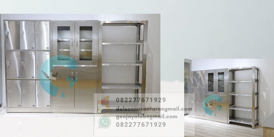 Set Lemari Penyimpanan alat reagen dan Rak Laboratorium atau Workshop